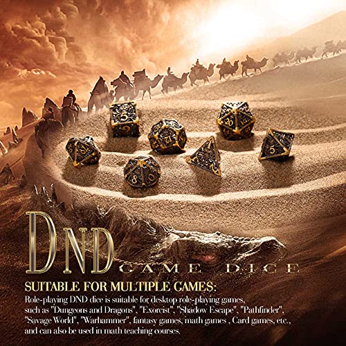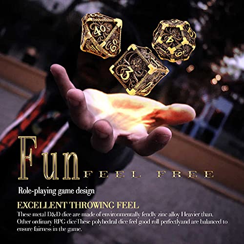 MRWiZMS Set di Dadi Poliedrici D&D in Metallica Cavo, Completo di Dadi DND, Dadi in Metallo di Rame Puro, Tema Rpg Adatto Dungeon And Dragon DND, Dadi del Gioco di Ruolo Pathfinder MTG (Ancient Gold)