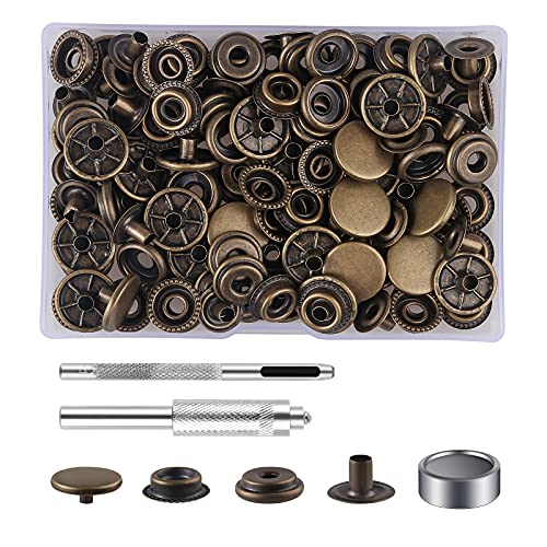 MSDADA -Set di 37 Bottoni Automatici a Pressione, Metallo Bottoni a Pressione per Abbigliamento, con 3 Strumenti di Fissaggio a Scatto per Borse, Jeans, Vestiti, Tessuto, Artigianato in Pelle (Bronzo)