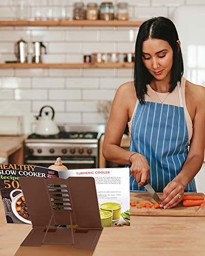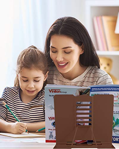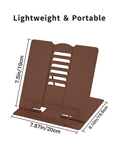 MSDADA Supporto per Libri da Scrivania in Metallo Regolabile per Libri di Cucina e Documenti Portatile Robusto per Ricette Libri di Testo Tablet Libri Musicali (Marrone)