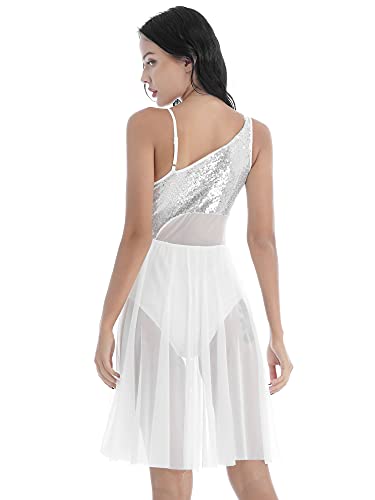 MSemis Abito da Ballo Latino Americano Donna Paillettes Tutu Leotards Abito da Pattinaggio Artistico Skater Vestito Danza Classica Balletto Jazz Samba Salsa Danza Moderna Argento XL