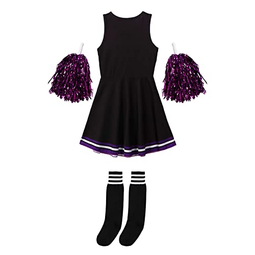 MSemis Costume da Cheer-Leader Bambina 3 Pezzi Vestito da Cheerleading + Calzini + Pom Pom Ragazza per Scuola Uniforme Cosplay Festa di Compleanno Costume Canevale Nero 3-4 anni