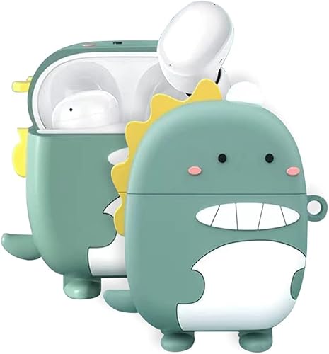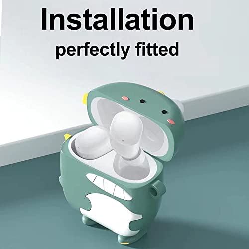 Msiall Silicone case compatibile con redmi buds 4, [Supporta la ricarica wireless] [Custodia protettiva antiurto] Simpaticodi cartoni 3D Green dinosaur