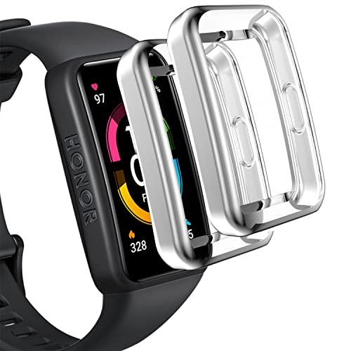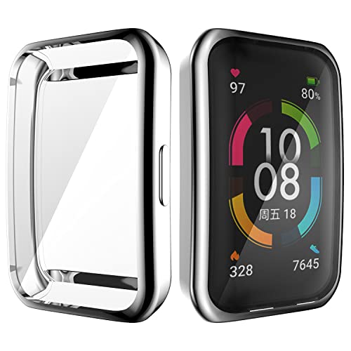 Msm-case[2 Pezzi Compatibile con Custodia Protettiva Honor Band 6/Huawei Band 6/Band 7,Proteggi Schermo Flessibile in TPU a Protezione,Custodia Protettiva Proteggi Schermo AntiGraffio-d'Argento