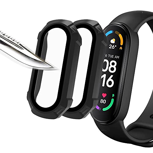 Msm-case 2 pezzi nero con Pellicola Protezione Schermo Vetro Temperato per mi band 6/5/4, 9H Durezza PC Case,Bumper,Sottile Case Protettiva Completa per Smart mi band 6/5/4