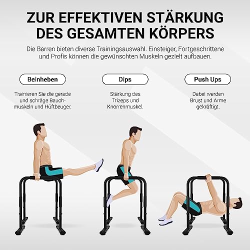 Effetto allenamento: non solo le braccia, il petto e i muscoli deltoidi anteriori possono essere allenati con le barre push up. Anche per costruire efficacemente i muscoli del gomito, della mano, dell'addome e delle gambe, Dip Station è il compagno perfetto per l'allenamento.