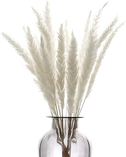 Msrlassn Erba di Pampa Piccola Naturale essiccata, Phragmites Communis,Mazzo di Fiori per Matrimoni e per la Decorazione Domestica (Bianca)