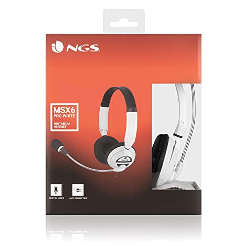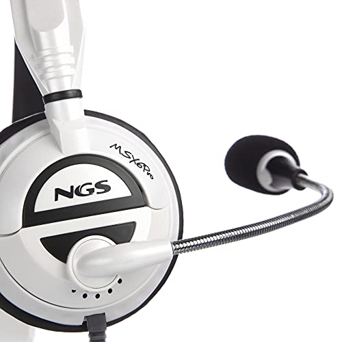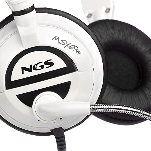 NGS MSX6 PRO WHITE- Cuffia Imbottita con Microfono Regolabile, Connessione JACK 3.5MM, Controllo del Volume Fino a 20 Hz, Colore Bianco