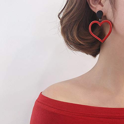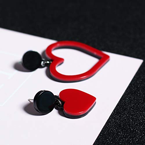 MSYOU, orecchini singoli a forma di cuore a forma di cuore squisiti orecchini asimmetrici in acrilico rosso amore pesca orecchini a forma di cuore