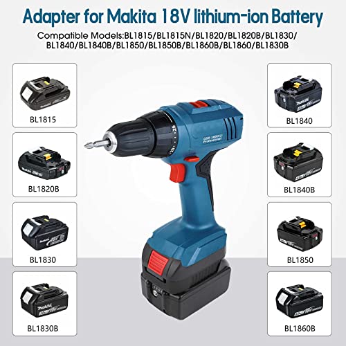 【Perfetta adattabilità per】: adatto per batteria Makita da 18 V: BL1850 BL1840 BL1830 BL1820 BL1815. Il prodotto è installato sulla batteria Makita e funziona in utensili elettrici professionali Bosch GBA da 18 V.
