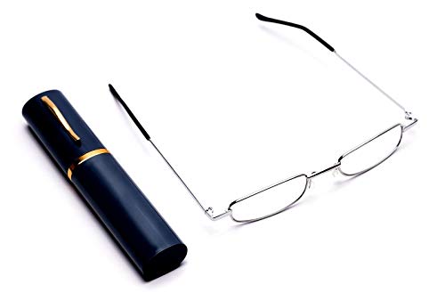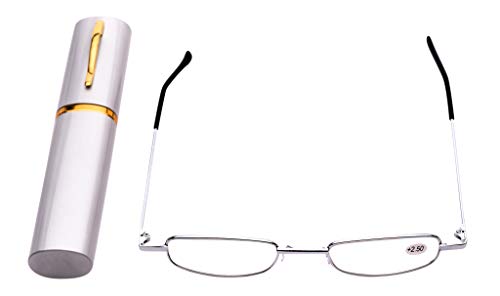 MT73 - portapenne argento Compact occhiali da lettura con custodia argento + 1,5 + 2,0 + 2,5