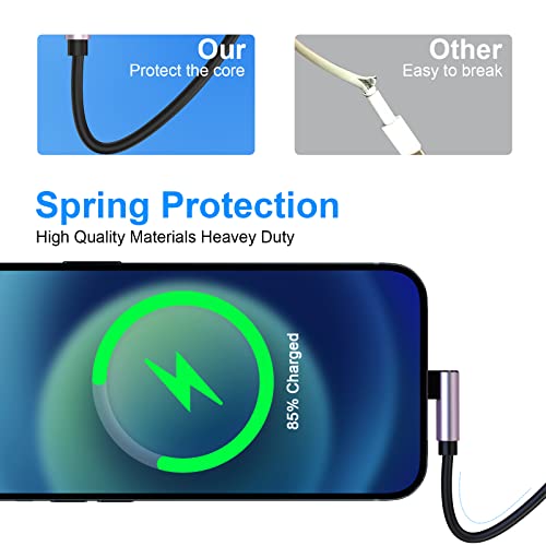 【Design del cavo Lightning umanizzato ad angolo 90】 Lo speciale design del connettore a 90 gradi mantiene il cavo organizzato e fuori mano, rendendo più facile giocare o guardare video durante la ricarica del telefono. L'interfaccia perfetta a 90 gradi può proteggere ulteriormente l'interfaccia del dispositivo, evitare che il cavo dati si pieghi e si rompa e prolunga la durata.