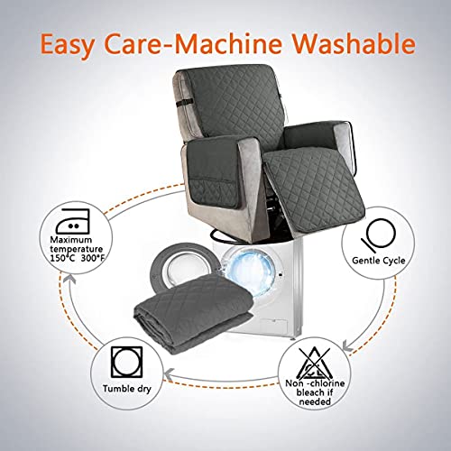 MTFun Copripoltrona Relax Universale con Braccioli, Copridivano 1 Posto Reclinabile Trapuntato, Antiscivolo Antimacchie Impermeabile per Protezione Divano Schienale da Casa Grigio (M)