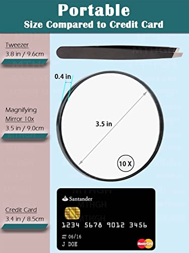MTHGH specchietti compatti ingranditore 10X, specchio per trucco portatile da viaggio, Specchi a mano perfetto per docce, Specchi cosmetici ingranditore da 3,4 pollici + pinzetta per sopracciglia