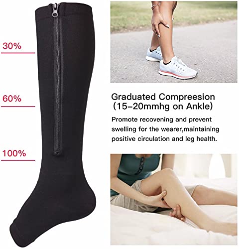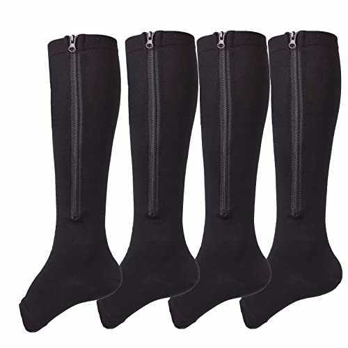 MTSS 4 Paia Calze a Compressione Medica, con Punta Aperta, Firm Classe II, Gambaletto a Compressione Graduata, al Ginocchio Supporto Calze Senza Puntale. Black-S/M