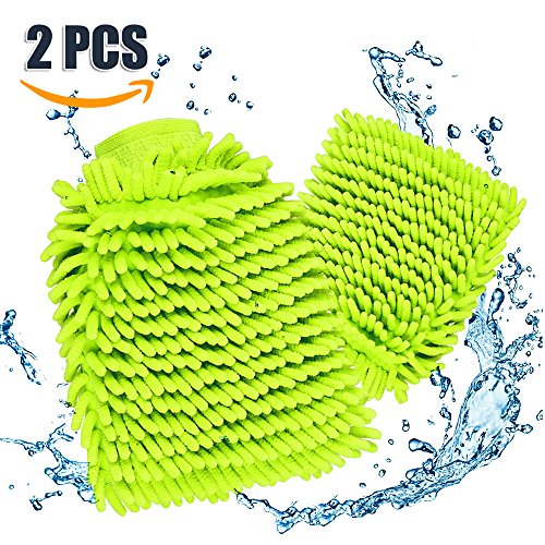 MTURE Pulizia Guanti, Lavare Guanti, Lavaggio Auto Guanto Auto Wash Mitt in microfibra- Verde (1 coppia)
