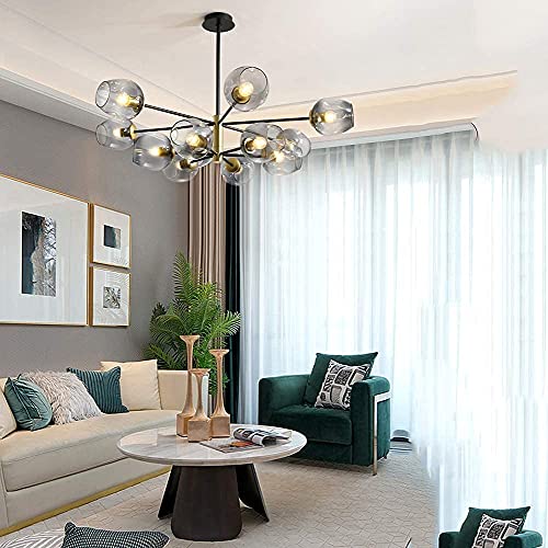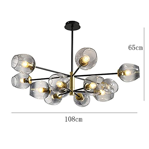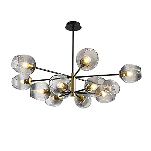 MTYLX Impianto Moderno Del Lampadario Di Sputnik Dell Industria, Dell'Impianto Di Ombra Di Vetro Centrale per la Sala da Pranzo Soiorno,Fumare Grigio,12 Luci