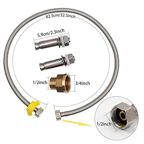 Contenuto della confezione: 1 x Ciotola in acciaio inossidabile, 1 x valvola a galleggiante, 1 x tubo intrecciato (1/2 "ID, 32 "di lunghezza), 1 x connettore in ottone (1/2 "filettatura maschio su un lato e 3/4" filettatura femmina sul lato opposto), 2x viti di montaggio, 4 x guarnizioni in gomma;