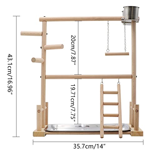 MUALROUS Pappagallo Parco Giochi per Uccelli Pesce persico Supporto per Uccelli Pappagallo Playstand Legno Naturale per Uccelli Esercizio Palestra per Pappagalli Cockatiel Budgie Finch