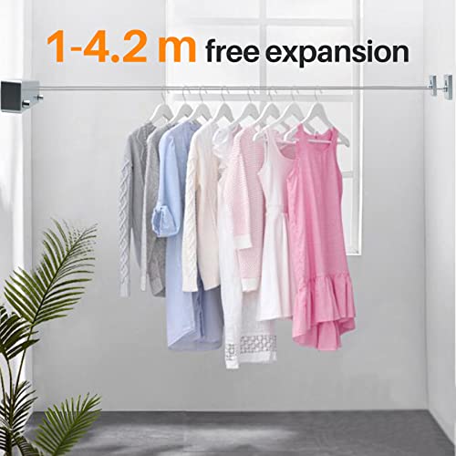 MUALROUS Stendibiancheria a doppia corda retrattile estensibile linea di lavaggio regolabile impermeabile linea di biancheria da parete per uso interno fino a 4,2 m lungo linea di lavaggio