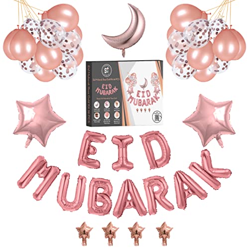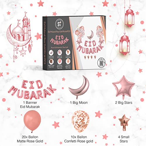EID by MUBARAK DECORATION - Palloncino AID MOUBARAK - Gonnellino gonfiabile - 38 PEZZI - NASTRO INCLUSO - 5 Dimensioni di palloncini fino a 90 cm - Per una Festa Dopo il Ramadan (ROSE GOLD)