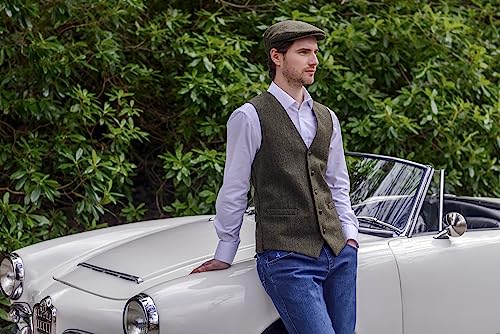 Berretto piatto da uomo: questo cappello piatto da uomo combina lo stile tradizionale irlandese con comfort e calore. La prossima volta che hai bisogno di un tocco finale elegante per il tuo outfit, prendi questo berretto da strillone! Indossalo con un cappotto di tweed e scarpe eleganti per una serata in città, o abbinalo a una camicia abbottonata e mocassini per un look più casual. Non importa come lo abbini, questo berretto a spina di pesce è una bella aggiunta al guardaroba di chiunque.