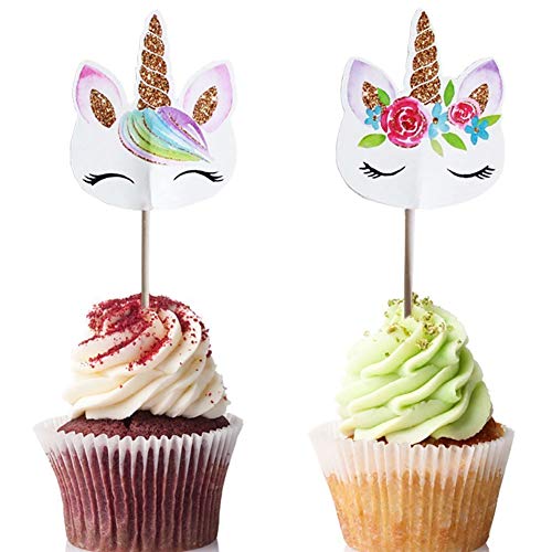 Mudacun 48pcs Arcobaleno Unicorn Cake Toppers Carino Torta di Compleanno Decorazioni Double Sided Carte Torta Unicorn