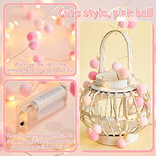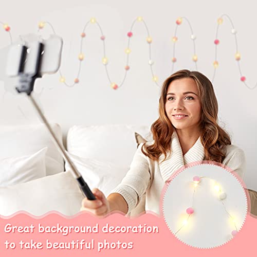 Crea un'atmosfera dolce: totalmente 30 LED, con colore rosa e bianco, questa decorazione di illuminazione con palline colorate con pompon è squisita e adorabile, regalandoti una sensazione felice e dolce