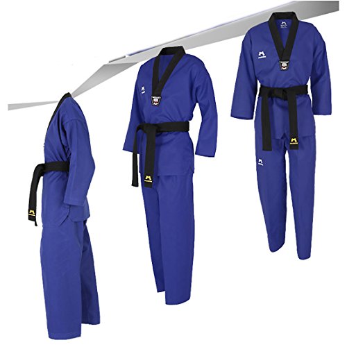 Mudoin Taekwondo 3 divisa per adulti con scollatura v akido hapkido per uomo 170 (160-170cm) (5.24-5.57ft) Blu