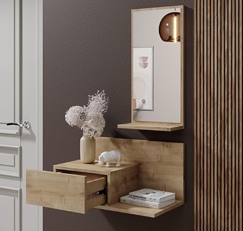 Modalità: Mobile da Ingresso sospeso con Specchio e Cassetto. Design minimalista. Un mobile ideali per l'ingresso di casa e per i ritocchi dell'ultimo minuto.