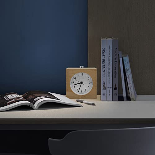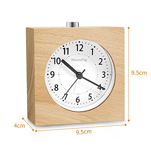 Muenfly Sveglia da Comodino Analogica, Orologio da Tavolo con Snooze, Sveglie da Comodino Vintage Silenziosa in Legno Naturale