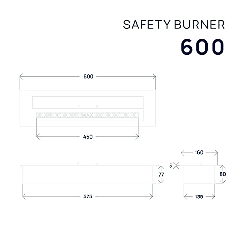 Muenkel design Safety Burner 600 - Bruciatore manuale - Camera di combustione bioetanolo con 45 cm di larghezza - acciaio inox spazzolato