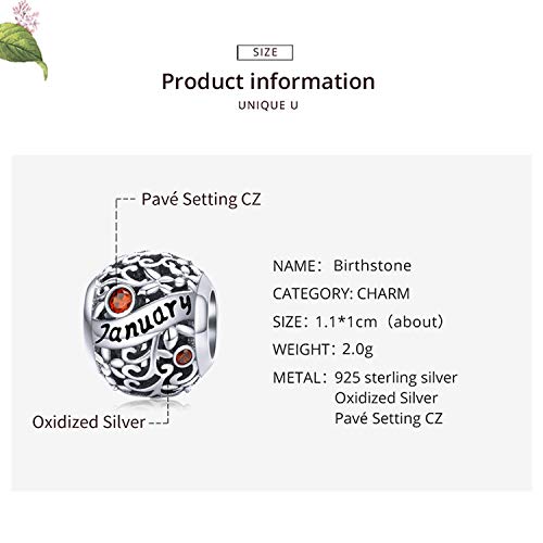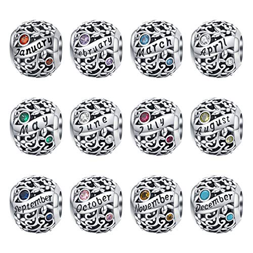 Materiale ipoallergenico: ciondolo in argento Sterling S925, con pietre portafortuna del nascito, compatibile con braccialetti Pandola, Biagi, Troll e Chamilia. Adatto per collane e braccialetti. Antiallergico e non danneggia la salute. Senza piombo e senza nichel, per sentirti a tuo agio mentre lo indossa ed evitare irritazioni sulla pelle.