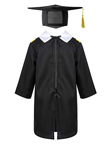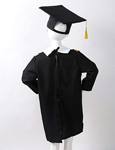 Mufeng Abito da Laureato Set Toga Laurea e Tocco Cappello Laurea Costume da Laureato per Bambini Studenti Elementare Medi Linea Costume Travestimento 4-12 Anni Giallo 4-5 Anni