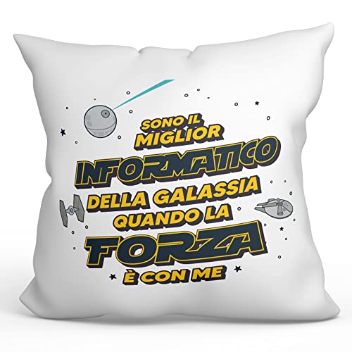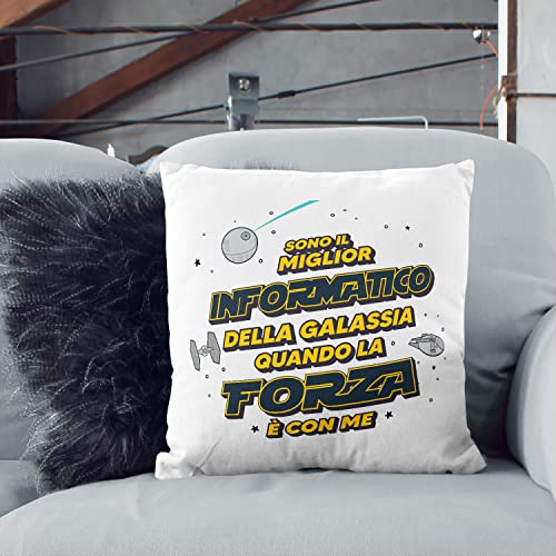 MUGFFINS Cuscino INFORMATICO uomo - In italiano - Miglior Della Galassia Quando Forza È con Me - Regali Divertenti Laurea Compleanno - Rivestimento e Imbottitura (40x40 cm).
