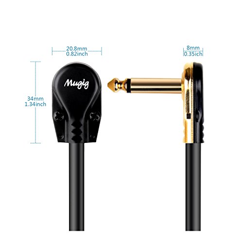 Mugig Cavi Patch per Effetti Chitarra Elettrica Jack dorato Cavi Filo 15cm con connettori angolo retto Professionale (Pacchetto di 3)