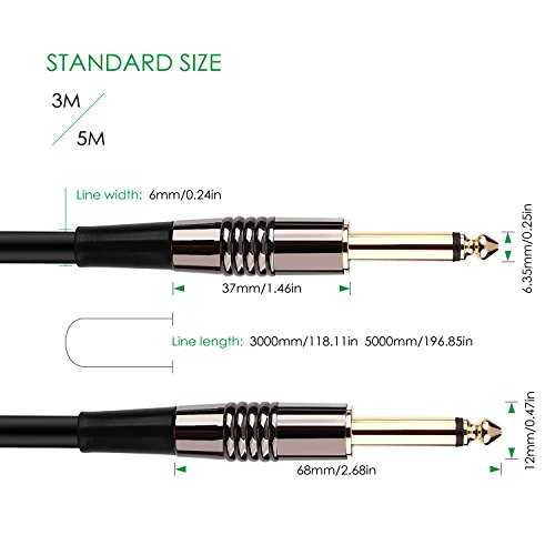 Mugig Cavo per Strumenti Musicali da Jack 6,3 mm a Jack 6,3 mm,Adatto per Chitarra,Basso,Tastiera. (5m)