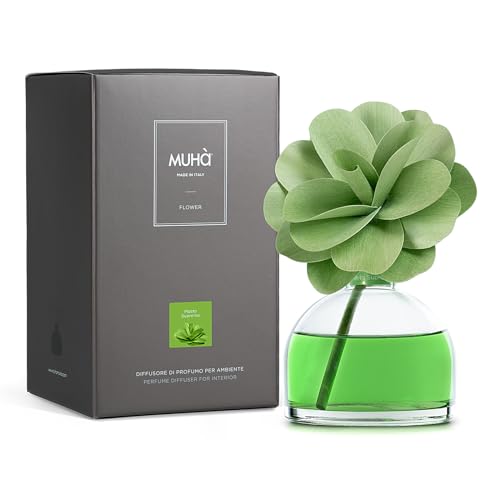 MUHA' | Profumatore per ambiente Flower Diffuser, Fragranza Mosto Supremo, Diffusore Ambiente con Fiore in Legno di Betulla, Formato da 200 ml