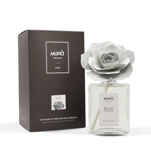 MUHA' | Profumatore per ambiente Rosa Diffuser, Fragranza Fior di Cotone, Diffusore Ambiente con Rosa in Legno di Betulla, Formato da 200 ml