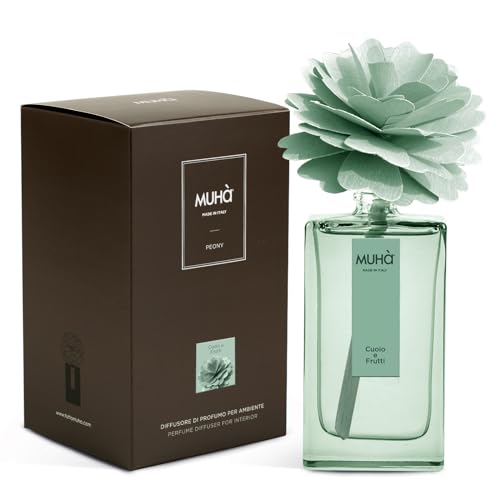 MUHA' | Profumatore per ambienti Peony Diffuser, Fragranza cuoio e Frutti, Diffusore Ambiente con Peonia in Legno di Betulla, Formato da 100 ml