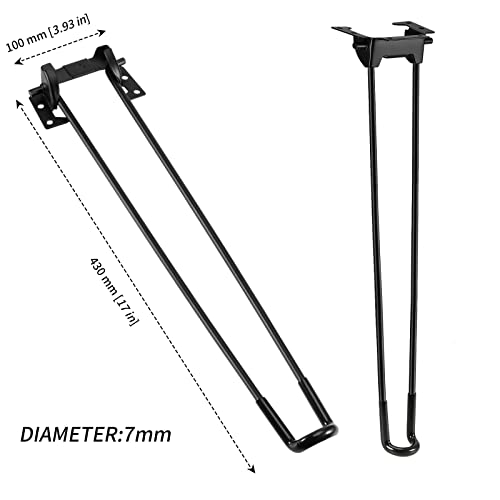 MUKCHAP Confezione da 8 gambe a forcina nere da 43 cm, gambe pieghevoli da tavolo, gambe in metallo, gambe resistenti per mobili con piedini protettivi per caffè, mini scrivania fai da te, comodino