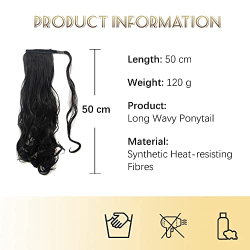 Mulaibdin Capelli Finti Lunghi 50 cm, Coda Capelli Extension, Coda Finta Capelli Mossi Extension Clip, Extension Coda Capelli Ricci, Coda di Cavallo Extension (Marrone Scuro)