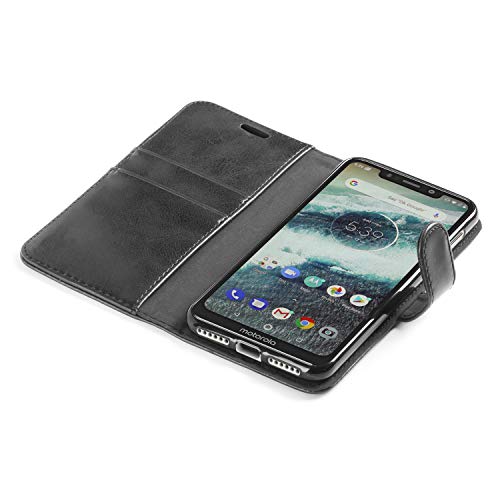 Mulbess Cover per Motorola One, Custodia Pelle con Magnetica per Motorola One [Vinatge Case], Nero