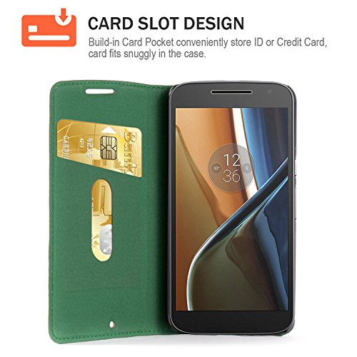 Mulbess Cover per Motorola Moto G4 Plus, Custodia Pelle con Funzione Stand per Motorola Moto G4 / G4 Plus Flip Case, Verde
