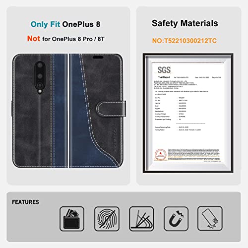 Mulbess Cover per OnePlus 8 5G, Custodia a Libro, Magnetica Flip con Chiusura, Interno TPU Antiurto Portafoglio,Sintetica, Elegante Nero