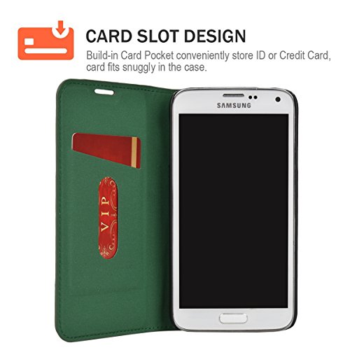 Mulbess Cover per Samsung Galaxy S5, Custodia Pelle con Funzione Stand per Samsung Galaxy S5 / S5 Neo Flip Case, Verde