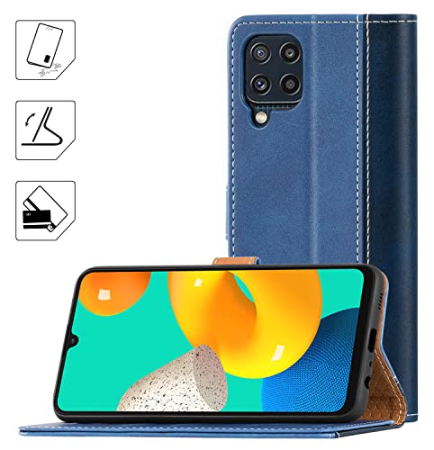 Mulbess Cover per Samsung Galaxy M32 4G / A22 4G, Custodia Sintetica in Pelle, Tasca Slot Carta, Supporto Stand, Magnetica Chiusura Case, Elegante Diamante Blu