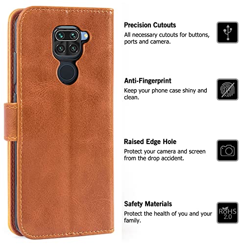 Mulbess Cover per Xiaomi Redmi Note 9, Custodia a Libro, Magnetica Flip con Chiusura, Interno TPU Antiurto Portafoglio,Sintetica, Vintage Marrone
