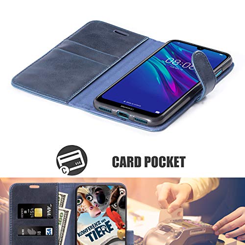 Mulbess Custodia per Huawei Y6 2019 / Honor 8A, Cover Magnetica Flip con Chiusura, Fessura Carte Portafoglio, Portacellulare Protezione, Vintage Navy Blu