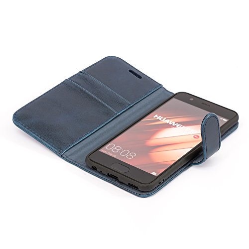 Mulbess Custodia per Huawei P10, Cover Magnetica Flip con Chiusura, Fessura Carte Portafoglio, Portacellulare Protezione, Vintage Navy Blu