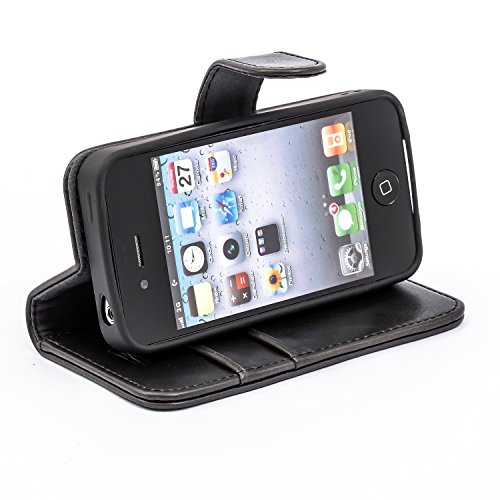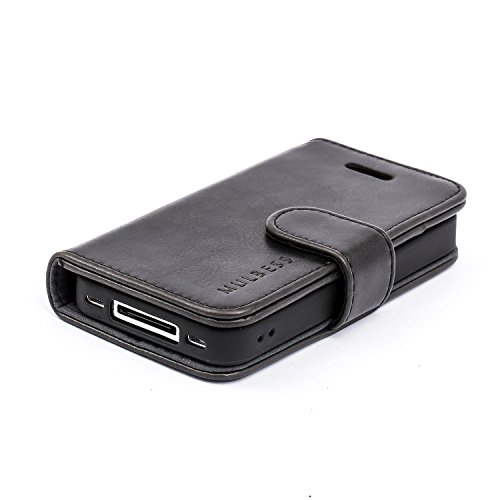Mulbess Custodia per iPhone 4s / iPhone 4, Custodia Magnetica Flip con Chiusura, Sintetica Portacellulare Protezione, Vintage Nero